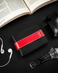 Skórzany portfel męski czarno-czerwony poziomy — Peterson 304 MOTO3