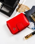 Skórzany portfel damski czerwony na zatrzask - Rovicky RV-3412-SLA
