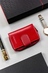 Skórzany portfel damski na zatrzask i suwak czerwony - Peterson RD-46-GCL