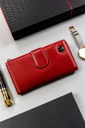 Duży skórzany portfel damski na zatrzask czerwony - Peterson RD-48-GCL