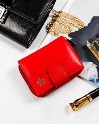 Mały portfel damski skórzany na zatrzask w czerwonym kolorze - Rovicky R-DLL2-NCD