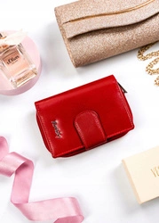 Skórzany czerwony portfel damski zamykany na zatrzask - Rovicky CPR-121-BAR