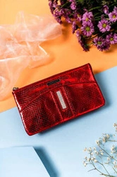 Skórzany lakierowany portfel damski czerwony skóra węża RFID - Peterson BS-466