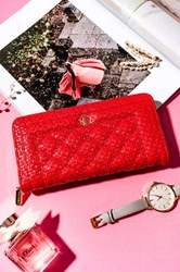 Duży skórzany portfel damski na zamek lakierowany czerwony - Lorenti 76121-MSD