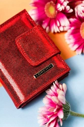 Skórzany lakierowany portfel damski na zatrzask i bigiel czerwony - 4U Cavaldi H23-2-SH9