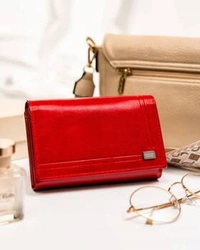 Skórzany portfel damski zamykany na zatrzask czerwony - Rovicky R-613-DDW
