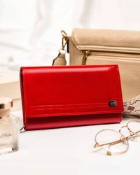 Skórzany portfel damski lakierowany czerwony - Peterson 421077-SAF
