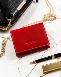 Zestaw prezentowy: skórzany portfel damski i brelok czerwony — Peterson SET-D-02-KCS