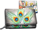Kolorowy skórzany portfel damski na zatrzask - Rovicky R-N22-ART