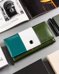 Wielokolorowy zielony skórzany portfel damski na zatrzask — Peterson PTN RD-08-GCL-S
