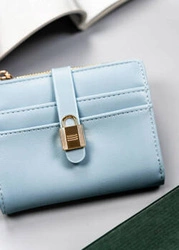 Mały skórzany portfel damski na zatrzask i suwak błękitny - Peterson KA-26