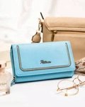 Skórzany błękitny portfel damski na zatrzask i suwak - Peterson KA-27