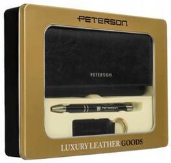 Zestaw prezentowy: skórzany portfel damski czarny, brelok i długopis — Peterson ZD7