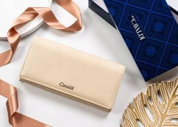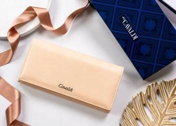 Duży beżowy portfel damski poziomy ze skóry ekologicznej - 4U Cavaldi GD20-DNM
