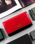 Skórzany portfel damski na zatrzask czerwono-czarny — Peterson KA-18