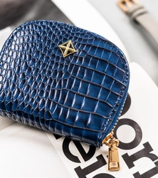 Elegancki mały portfel damski na bigiel i zatrzask granatowy — Milano Design SF-1814-JM