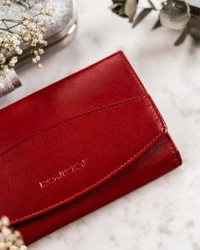 Skórzany portfel damski z klapą na bigiel czerwony — Rovicky R-RD-36-GCL