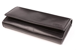 Skórzany portfel damski czarny na zatrzask - Vooc PPD5