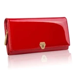 Skórzany portfel damski lakierowany na zamek ze smyczką czerwony - Betlewski 1010804-RED
