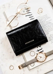 Skórzany portfel damski czarny z klapką na zatrzask - Peterson PL-411