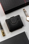 Klasyczny mały portfel damski na zatrzask i suwak czarny - Peterson RD-41-GCL