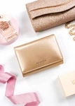 Mały złoty portfel damski z zapięciem ze skóry ekologicznej - Peterson 014-HRH