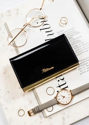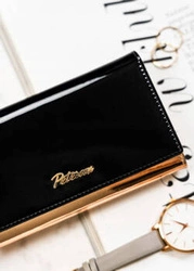 Skórzany portfel damski czarno-złoty z lakierowaną klapką - Peterson 1N-409