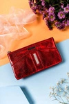 Duży skórzany portfel damski na zamek lakierowany czerwony - Lorenti 76121-MSD