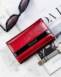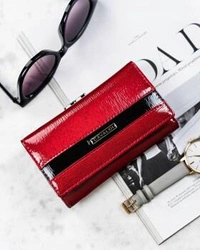 Skórzany lakierowany portfel damski na zatrzask i bigiel czerwony - 4U Cavaldi H23-2-SH9