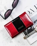 Skórzany portfel damski na zatrzask i bigiel czerwony - Peterson 42122-SAF