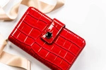 Portfel damski z zapięciem ze skóry ekologicznej czerwony lakierowany — Peterson 002-YS