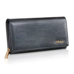 Skórzany portfel damski lakierowany na zamek ze smyczką czarny - Betlewski 1010804-BL