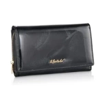 Duży skórzany portfel damski na bigiel lakierowany czarny - Betlewski 1010825-BL