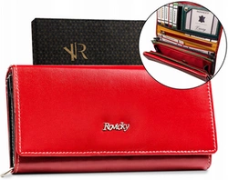 Duży czerwony portfel damski skórzany na karty - Rovicky RV-1680177-BCA