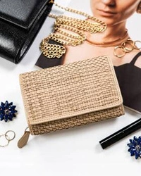 Elegancki potfel damski na bigiel i zatrzask beżowy - 4U Cavaldi GD24-FO-DNM
