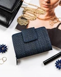 Skórzany portfel damski zamykany na zatrzask granatowy - Rovicky R-613-DDW