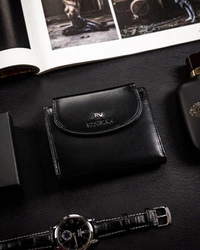 Skórzany portfel damski na zatrzask czarny - Rovicky RV-70614-9-BCA