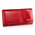 Duży skórzany portfel damski z klapką na bigiel czerwony Peterson PTN PL-467-RED