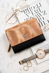 Skórzany portfel damski portfel na zatrzask złoto-czarny - Rovicky RV-3412-SLA