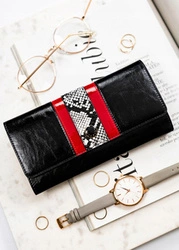 Skórzany portfel damski w czerwono-czarnym kolorze na zatrzask i bigiel - Peterson 1N-466