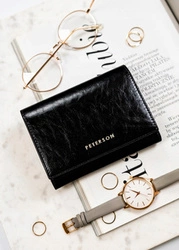 Skórzany portfel damski w czarnym kolorze zamykany na zatrzask - Peterson PL-409