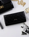 Elegancki portfel damski czarny z pikowanej skóry naturalnej - Rovicky R-RD-21-GCL-Q
