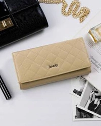 Skórzany portfel damski pikowany beżowy na zatrzask - Rovicky R-RD-12-GCL-Q