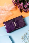 Duży skórzany portfel damski na zamek lakierowany fioletowy - Lorenti 76121-MSD