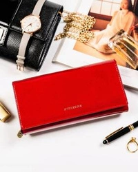 Portfel damski lakierowany czerwony ze skóry ekologicznej — Peterson 002-DS