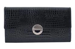 Skórzany portfel damski portfel lakierowany czarny croco - Barberini's 659-1