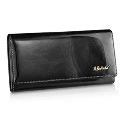 Duży skórzany portfel damski na bigiel lakierowany czarny - Betlewski 1010825-BL