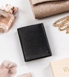 Skórzany portfel damski zamykany klapką czarny RFID — Cavaldi RD-19-GCL-6382 BL