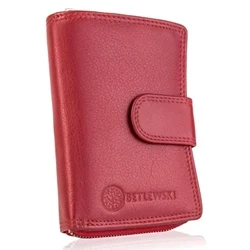 Skórzany mały portfel damski na zamek czerwony - Betlewski 1010720-RED