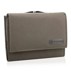 Skórzany mały portfel damski na bigiel szary - Betlewski 1010435-GRAY